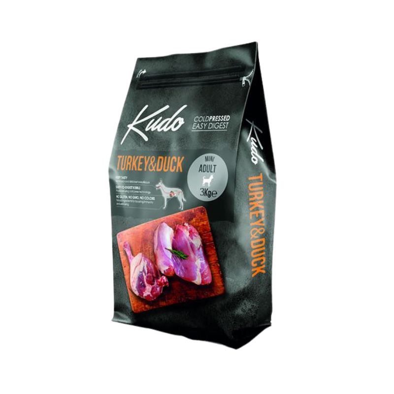 קודו KUDO הודו וברווז לגזע קטן הוא מזון יבש מלא לכלבים בוגרים מגזעים קטנים מעל גיל 12 חודשים. זהו מזון שמבוסס על הודו וברווז כרכיבי הבשר המרכזיים, ומיועד לתת תזונה יומיומית מאוזנת עם טעימות גבוהה והרכב תזונתי איכותי.